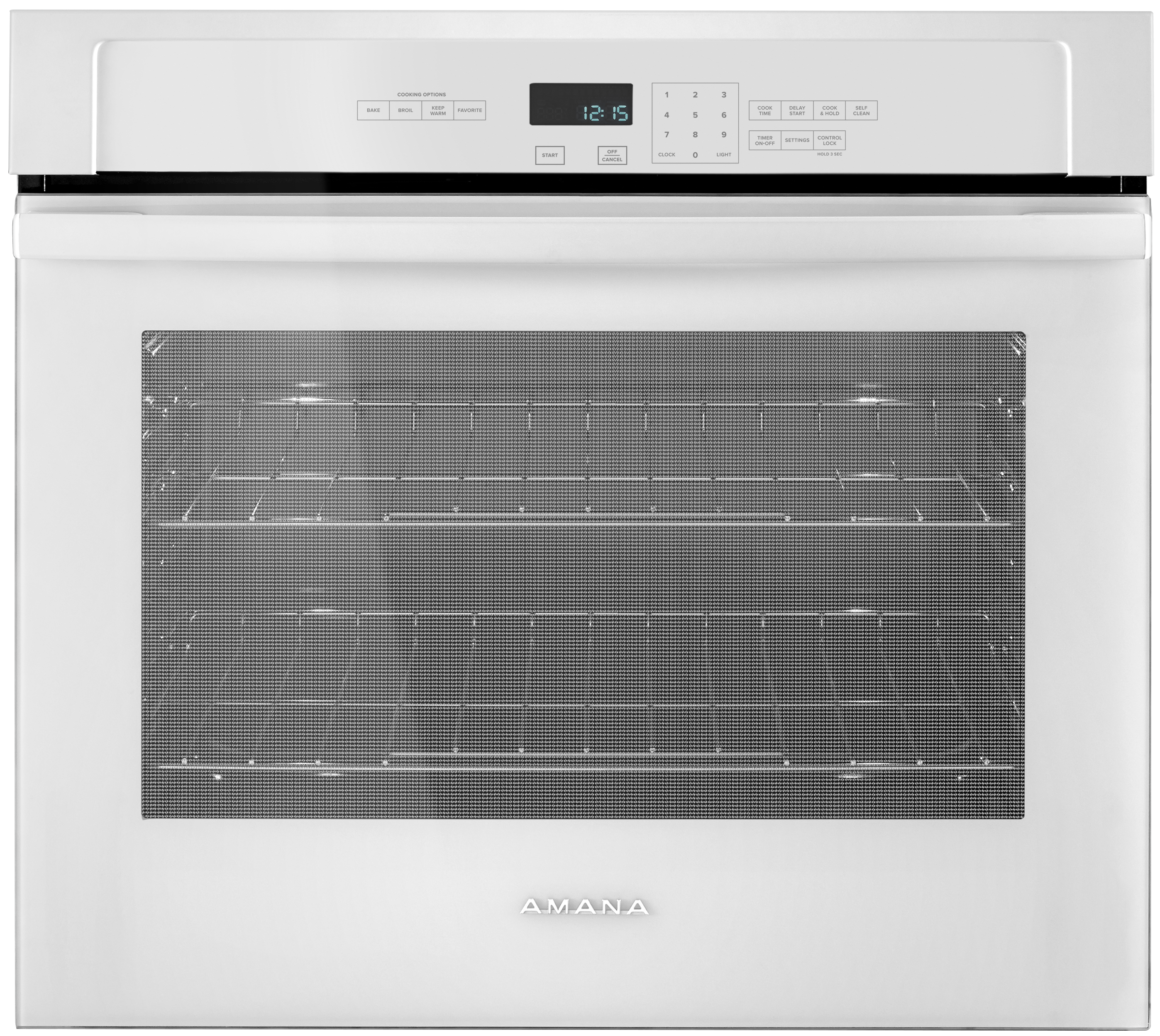 This 30-inch Amana® Wall Oven with the FIT System Limited Guarantee lets you live large with a 5.0 Cu. Ft. Capacity. Plus, the Temp Assure™ Cooking System lets you bake Mom's creamy chicken pot pie or broil juicy chicken tenders with just the right heat. And when you're done with dinner, use the Self Clean Option to take care ofthe cleanup.