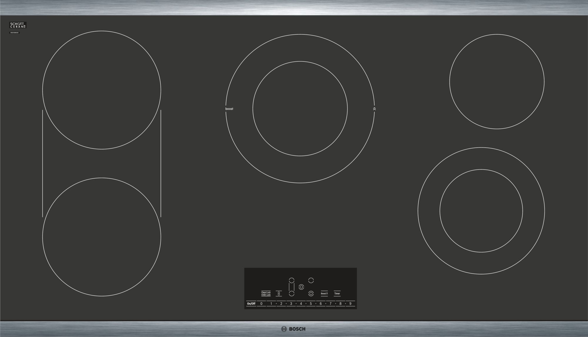 Bosch 800 Series 36" Electric Cooktop-Black with Stainless Steel Frame with 5 burners, PreciseSelect® and SpeedBoost®Read More