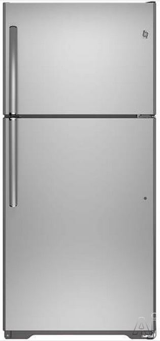 GE® 18.2 Cu. Ft. Top Freezer Refrigerator-Stainless Steel with spillproof glass shelves and adjustable-humidity drawersRead More