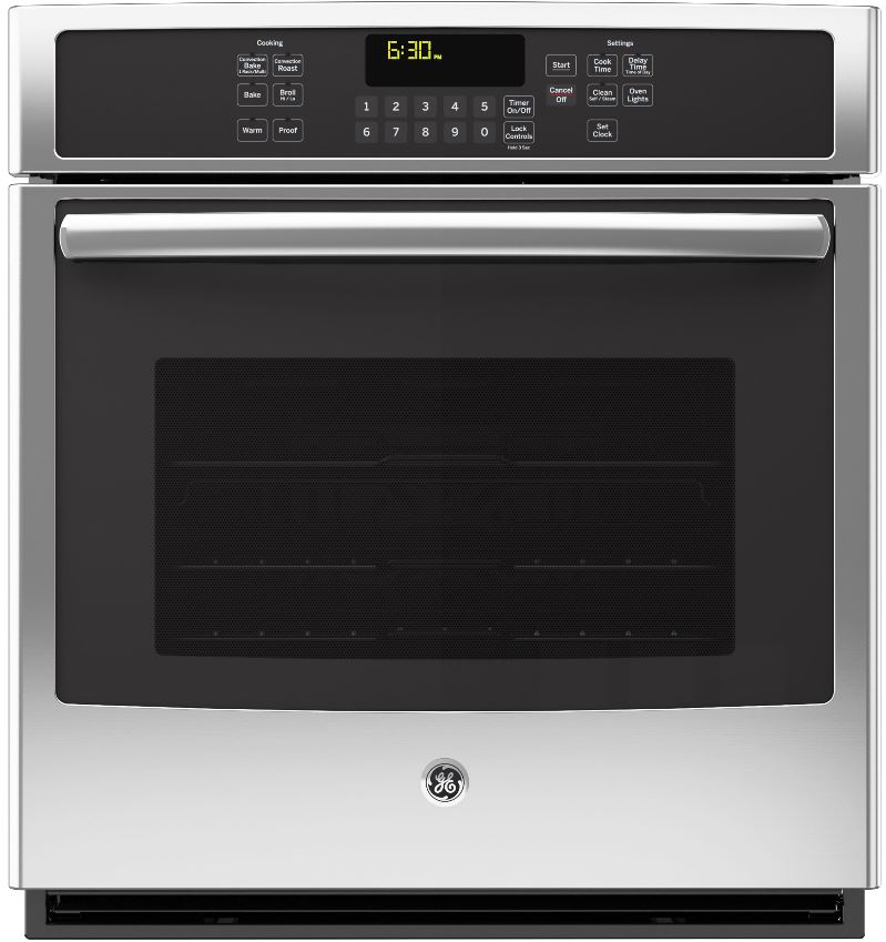 GE® 27" Electric Single Convection Oven Built In-Stainless Steel with 4.3 cu. ft. capacity, hidden bake oven interior, and glass touch LED controlsRead More