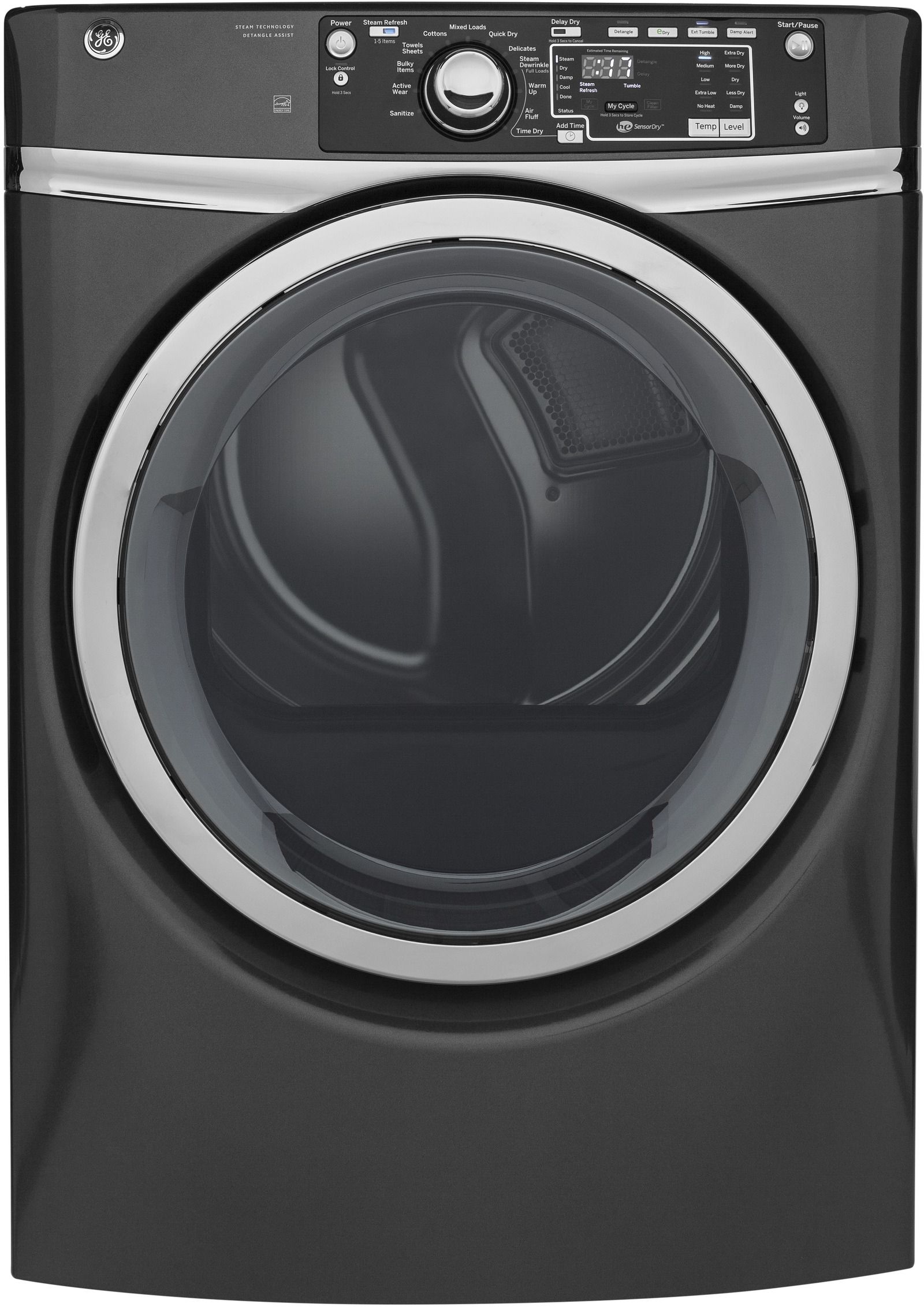 GE® Front Load Gas Dryer-Gray with 8.3 cu. ft. capacity, stainless steel drum and sensor dryRead More