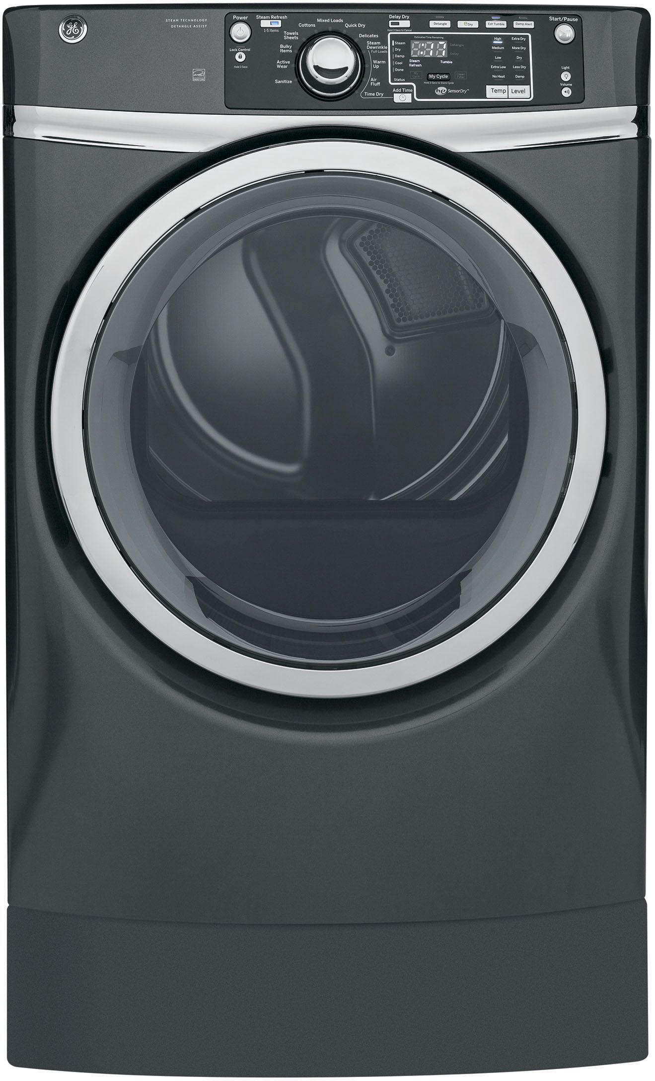 GE® Front Load Gas Dryer-Gray with 8.3 cu. ft. capacity, stainless steel drum and sensor dryRead More