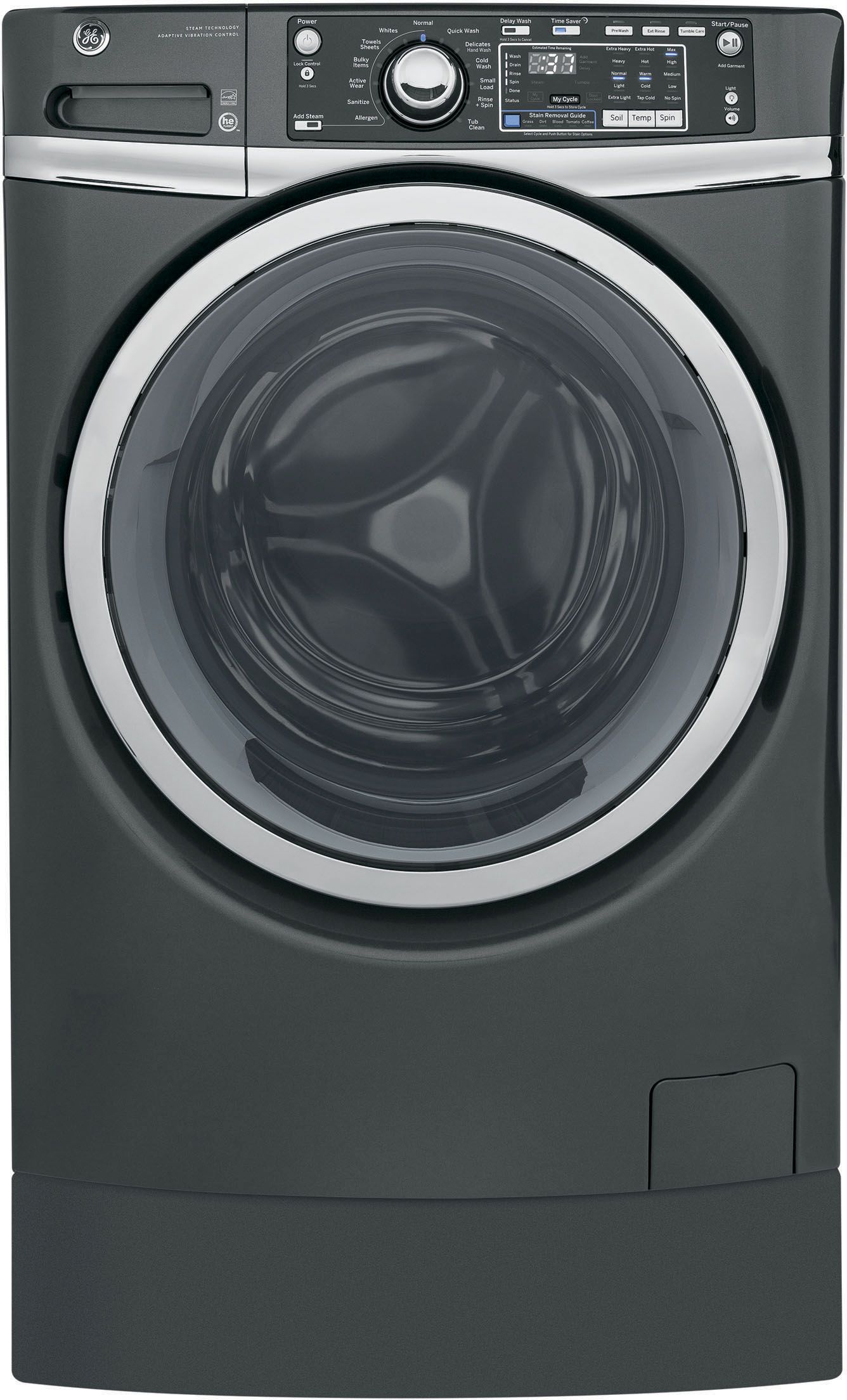 GE® Front Load Washer-Gray with 4.9 cu. ft. capacity, time saver and internal water heaterRead More