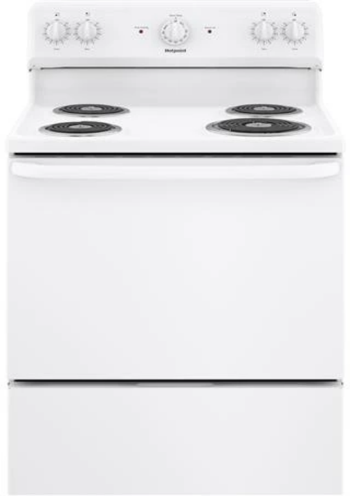 Porcelain upswept cooktop raised edges contain spills, while the surface is easy to wipe clean. Drip bowls contain spills and remove for easy cleaning. Removable full-width storage drawer store cookware or kitchen accessories.Read More