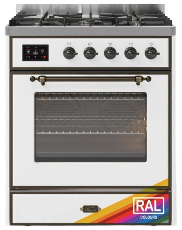 The 30" Majestic dual fuel range combines the classic Italian style and cutting-edge innovative technology, where form meets function. This range features a 5 gas burner cooktop, equipped with a total black brass flame spreader that has a non-stick nanotechnological coating and boasts a spacious 4 cu. ft. oven capacity.Read More