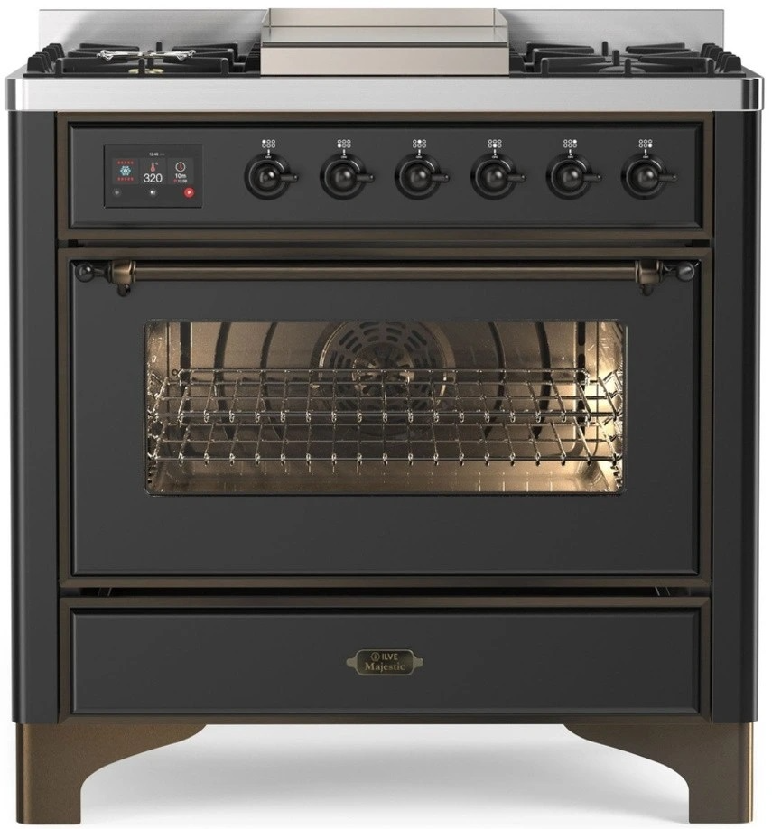 The 36" Majestic freestanding range brings the ultimate cooking experience to your kitchen. The large European Convection oven gives you the power to experiment with your dishes and get even cooking, while the full-width dishwarming drawer gives the option to use residual heat of the oven to keep cooked food warm or warm your dishes before serving. The cooktop features semi-sealed burners with various BTUs to cook whatever you want, however you want.Read More