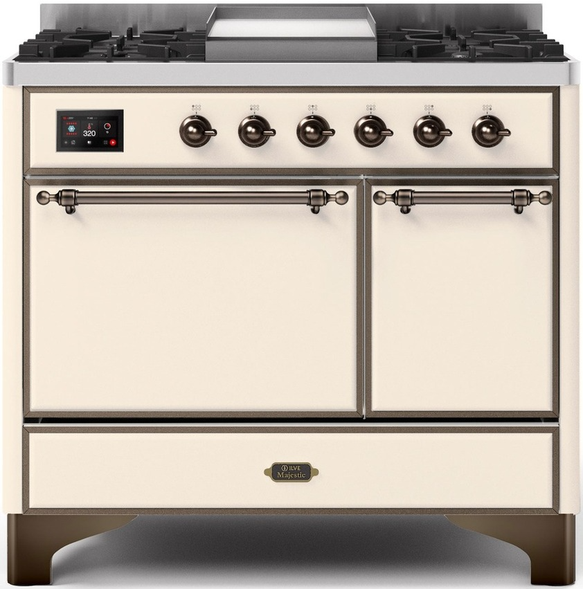The 40" Majestic freestanding range brings the ultimate cooking experience to your kitchen. The large European Convection oven gives you the power to experiment with your dishes and get even cooking, while the full-width dishwarming drawer gives the option to use residual heat of the oven to keep cooked food warm or warm your dishes before serving. The cooktop features semi-sealed burners with various BTUs to cook whatever you want, however you want.Read More