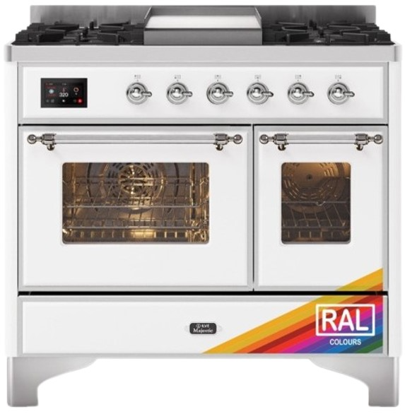 The Majestic 40" dual fuel range combines the classic Italian style and cutting-edge technology. This range features 6 gas burner and griddle, equipped with a total black brass flame spreader with non-stick nanotechnological coating, dual 2.3 + 1.52 cu. ft. total oven capacity, 4.3" full touch oven control display and easy clean enamel oven cavity.Read More