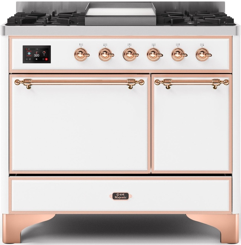 The 40" Majestic freestanding range brings the ultimate cooking experience to your kitchen. The large European Convection oven gives you the power to experiment with your dishes and get even cooking, while the full-width dishwarming drawer gives the option to use residual heat of the oven to keep cooked food warm or warm your dishes before serving. The cooktop features semi-sealed burners with various BTUs to cook whatever you want, however you want.Read More