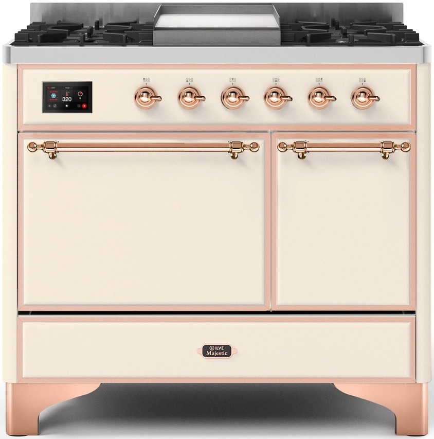 The 40" Majestic freestanding range brings the ultimate cooking experience to your kitchen. The large European Convection oven gives you the power to experiment with your dishes and get even cooking, while the full-width dishwarming drawer gives the option to use residual heat of the oven to keep cooked food warm or warm your dishes before serving. The cooktop features semi-sealed burners with various BTUs to cook whatever you want, however you want.Read More