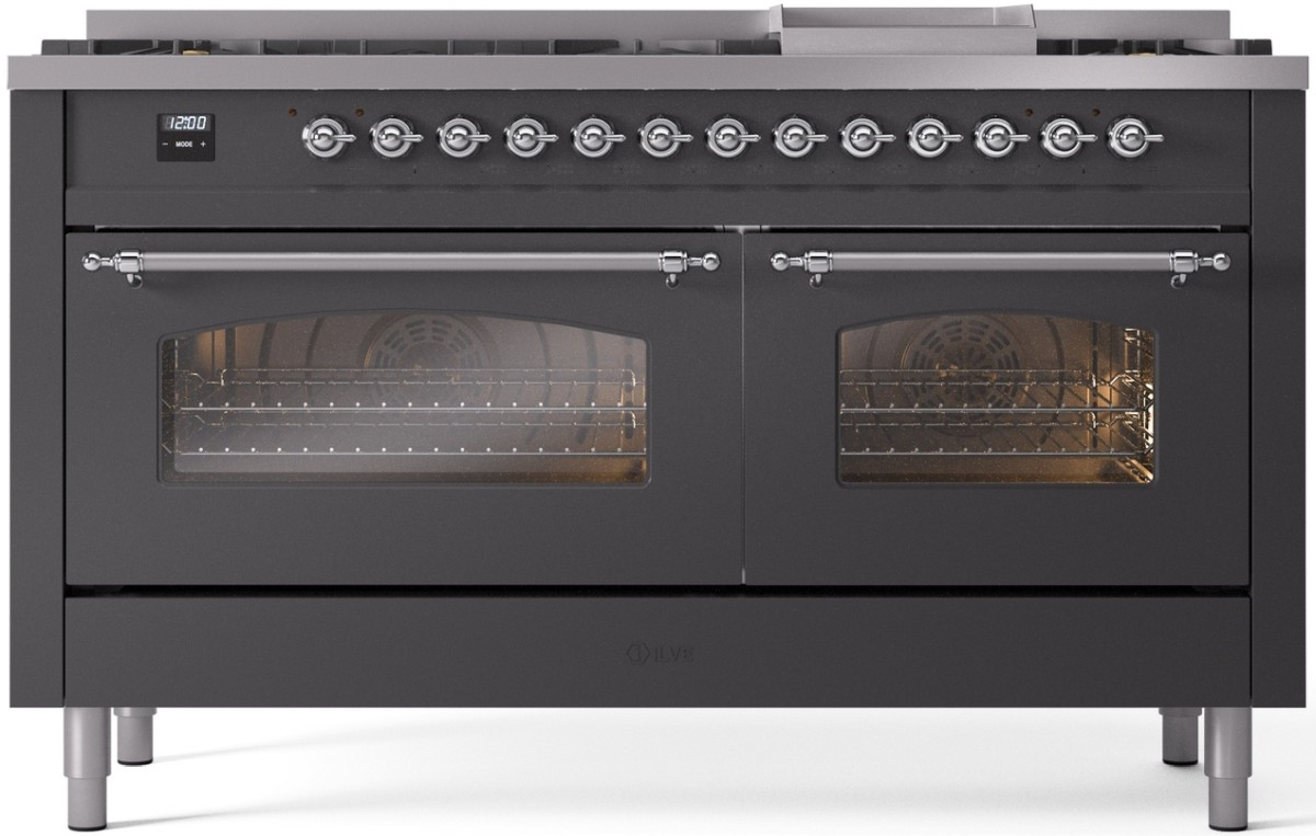 Introducing the new Nostalgie II 60" dual fuel range, a classic addition with a touch of innovation to any kitchen. This range feature sealed burners equipped with total black brass flame spreader that has a non-stick nanotechnological coating, heavy cast iron grates, 3.5 + 2.3 cu. ft. dual oven capacity and soft closing door system.Read More