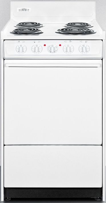The WEM110 is an apartment-sized 220V electric range sized at just 20" wide, with a generous 2.46 cu.ft oven interior that can accommodate large trays. Two adjustable oven racks are included. The waist-high broiler is located inside the oven, allowing you to switch functions without moving contents to a separate compartment on the floor. The lower drop-down storage compartment is ideal for keeping pots and pans out of the way in small kitchens.