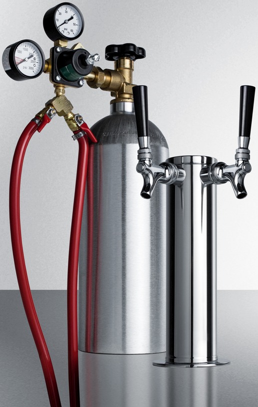 The KitWineTWIN includes a complete commercially approved stainless steel dual tap draft tower and all the equipment you need to connect to two wine kegs. We include a 5 lb. canister for a nitrogen/CO2 mixture. Assembled in the United States, this kit is compatible with all Summit kegerators and is listed to NSF-18 standards.Read More